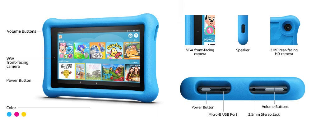 Product details The Amazon Fire HD 7 is arguably the best tablet for kids you can buy in Kenya. It is highly rated for its tough build, 2-year warranty, 10-hour battery, and a strong set of parental controls. For protection from drops and scratches, this tablet comes with a tough BLUE FOAM KID-PROOF CASE. Your child will enjoy free access to thousands of age-appropriate books, videos, apps, and games from the FreeTime Unlimited content library. ⭐️ Large Memory You can download these on the tablet’s 16 GB of storage, but if you need more space for your movies and games, there’s room to add storage of up to 512GB ⭐️ Parental Control When buying your kid’s tablet in Kenya, many parents worry about parental control. You don’t want your child to visit inappropriate websites or rack up in-app purchases on your card. Luckily, the Amazon Fire HD 8 offers plenty of parental controls so you can set preferences that limit usage, protect against age-inappropriate content, and block purchases. ⭐️ User Experience The Amazon Fire HD 7 runs on Amazon’s modified version of Android. So, even if it doesn’t have the Google Play Store on it, it’s much easier to set up, use, and navigate. You can set the user experience preference based on whether a child, a teen, or an adult is using the tablet.